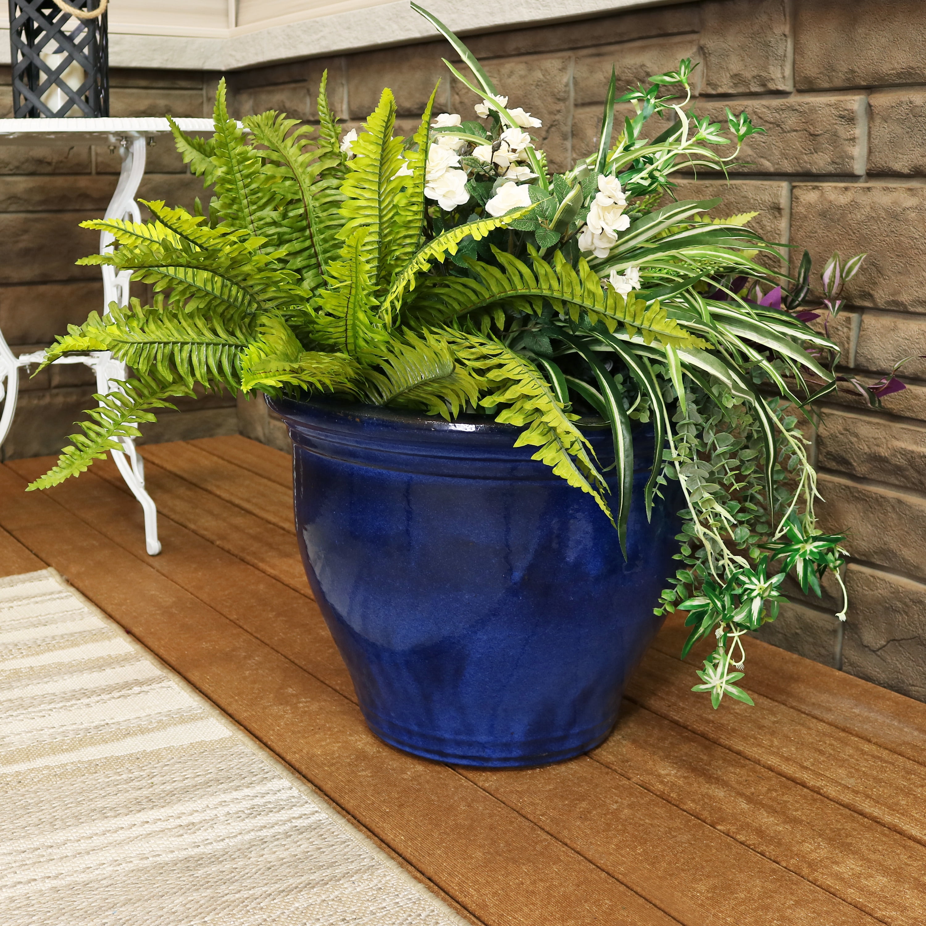 Sunnydaze Studio Outdoor Indoor Uv And Frost Resistant Ceramic Flower Pot Planter With Drainage Holes 18 Diameter Imperial Blue Walmart Com