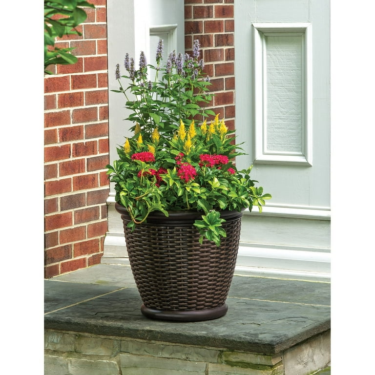 Better Homes Gardens 18 In Faux Wicker Resin Planter Pot Java Brown Walmart Com